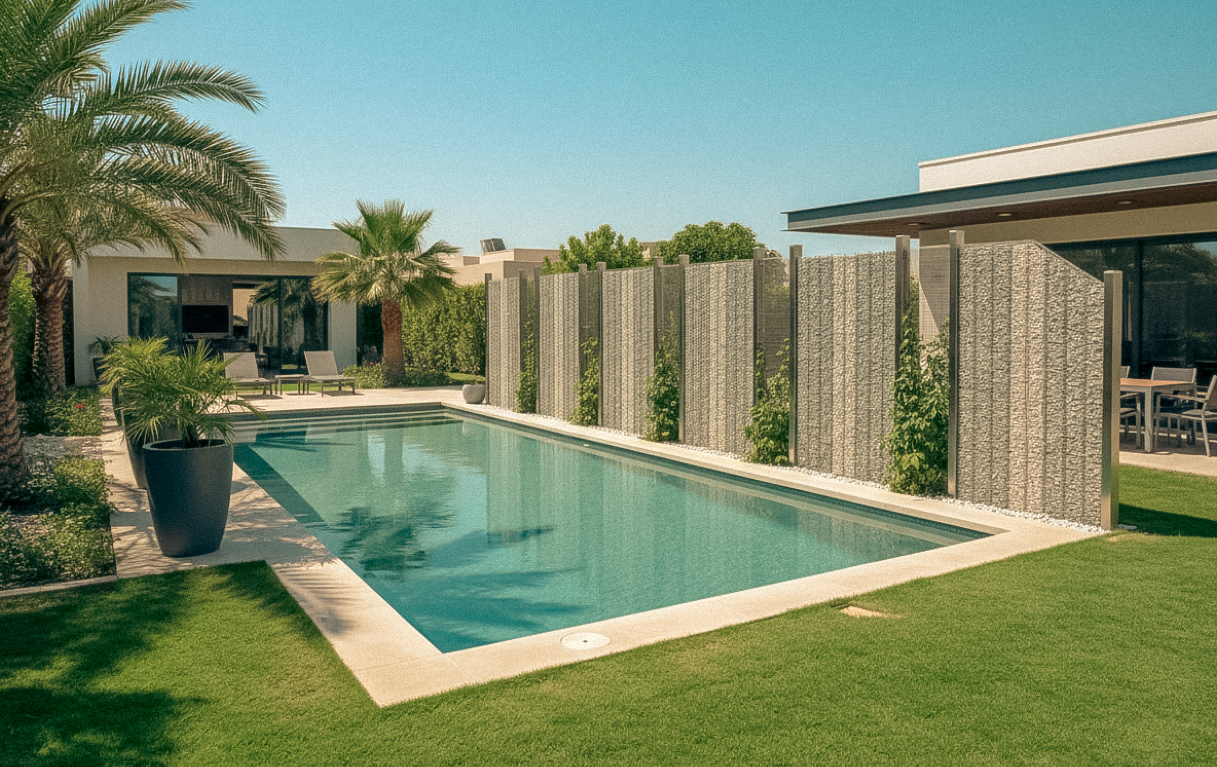 The nobility of stainless steel and natural stone elevates the precision of electro-welded mesh, creating an architectural presence that feels both contemporary and timeless. Since 2011, we have crafted high-end privacy panels conceived as true design features. Made in Italy production, where research, aesthetic sensibility and artisanal mastery come together in a process defined by uncompromising attention to detail. Every project is bespoke: carefully curated materials, meticulous workmanship, exclusive customisation and exceptional finishes. The result is privacy elevated—an expression of beauty, proportion and enduring performance. From concept to installation, we accompany each project with absolute care, integrating our screens into private residences and prestige commercial contexts, with customised solution in seamless dialogue with the architecture and evironment. A perfect equilibrium of function and refinement the balance between function and beauty: a discreet presence that protects, defines and enhances space.